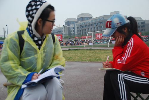 学生干部自然是每次活动不可缺少的一部分,他们要负责拍照、写稿子、统计分数、整理用具等工作。有的部门每天早上6点多就要到达田径场,晚上7、8点才能离开田径场,往往那些来的最早却离开的最晚的人是最累的。他们说:“其实这样辛苦得工作,我们也很累,但累又算得了什么呢?作为学生会的一员,我们要负责,这是我们的职责,服务大家,我们感到很高兴。”他们忙碌中又不忘给运动员们加油说:“你们永远是最棒的,西农学子永远是最棒的,我们为你们骄傲。”说着,又有一份表格递到了他们手中,他们又开始忙了。
