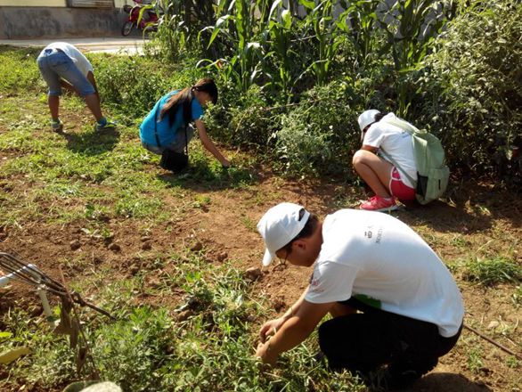 7月29日上午9点我们就开始了调研工作。我们调研的主要形式是挨家挨户走访询问。农户们亲切地招呼我们,他们脸上淳朴的笑容消除了我们之前所有的紧张和担忧。通过对当地几家种植大户的走访和攀谈,我们对猕猴桃的主要病害以及销售情况有了一定程度的认识和了解。农户告诉我们现在猕猴桃面临的最大病害就是溃疡病,这是一种很难根治的病,也是导致猕猴桃减产的主要原因。在热心农户的带领下,我们随后来到猕猴桃种植基地。在农户的实际操作示范中对猕猴桃的种植知识有了进一步的了解。