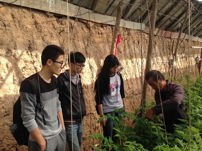 下午2点整,队员们集合完毕整装待发。经与合作社负责人的联系,队员们此番需要帮助合作社的农户们完成两个月前种植的番茄的授粉工作。大家提前了解到,西红柿开花时,用10~50毫克/千克的赤霉素能提高坐果率,且主要通过蘸花与喷花两种方式进行授粉。若在药液中添加适量的微量元素如硼、锌、铜等,对提高坐果率和促进果实膨大效果极佳。