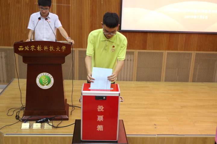 换届工作小组成员李明军宣读了校团委《关于园艺学院团委学生干部换届选举工作的批复》