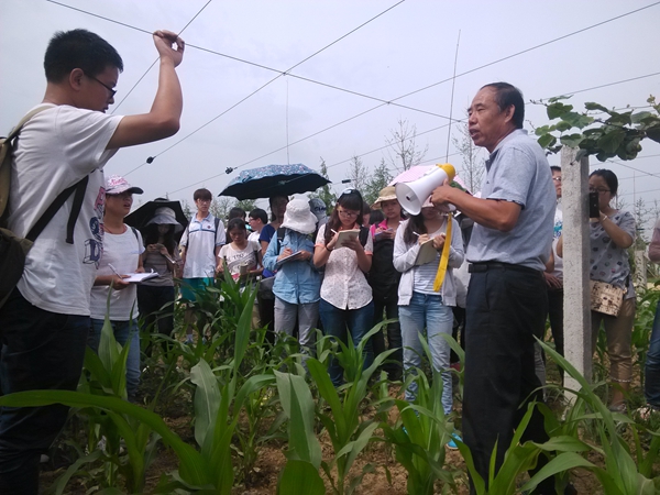 不同的果树对生产技术的要求不同,怎样才能更好的提高效益呢?针对这样的问题,6月10日,同学们在陕西省礼泉县分别对苹果、葡萄、石榴和杏进行了解。礼泉县现有果树85万亩,是典型的果树生产大县。在该地苹果推行的是目前世界上最先进的“矮砧集约高效栽培技术”模式。在技术层面,采取的是滴灌、微喷灌的节水技术;肥水一体化技术;采用“灯、板、带、芯”的病虫防治技术,果园可机械化程度高。葡萄霜霉病、灰霉病严重,在阴雨天气危害更严重,在当地主要采取避雨棚栽培。冬季在地上部5--10cm处埋土防寒可以防止藤蔓受冻影响产量。作为石榴的最佳适生区,当地十分重视施肥的问题。9月份施以有机肥为主的基肥、3~4月份施复合肥、采收前则以钾肥为主,省力效果好。礼泉御杏在生产上则主要采用阳坡种植、泉水灌溉的技术,使得果实含糖量高、果型端庄,深受消费者喜爱。“从来没有深入的了解到种植果树还需要这样‘高大上’的技术,今天的学习使我收获很大,回家我就可以应用到我家的果园了。”一位学生在实习结束后这样感慨到。