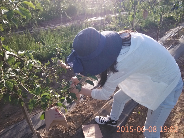 位于甘肃省庆阳县周祖农耕文化产业园区的庆城苹果试验示范站由我校、甘肃省庆阳市和庆城县三方合作共建,推行以地方为主的新型建设模式。在生产模式上,推广以间伐为主的改形修剪技术、旱地果园肥水调控技术及病虫害综合控制技术,苗圃的繁育主要以矮化中间砧、矮化自根砧和短枝乔化为主。作为西北黄土高原最佳苹果适生区,被誉为“中国红富士之乡”的甘肃省泾川县推行以乔化密植、高接换优、地膜覆盖的自由纺锤树形,这种树形利于“靠天吃饭”,利于优质丰产。乾县苹果种植注重管理,提倡以生态有机为理念的小冠密植模式,探索性的采用自压式灌水,肥水一体化等省力化栽培模式,效益显著。在实习期间,同学们围绕各种模式的不同,认真探讨,积极提问,对我国的苹果产业现状及其生产模式有了深刻的认识。