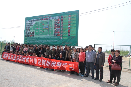 4月20日,西安市果业技术推广中心,灞桥区农林局和农技推广中心等单位组织,果业技术推广中心研究员郭晓成,园艺站站长关俊英等专家带领120余名从事樱桃种植的职业农民来我院铜川果树试验示范站观摩学习樱桃栽培管理技术。