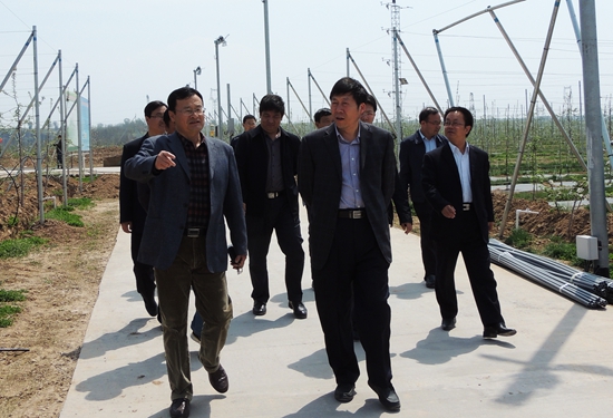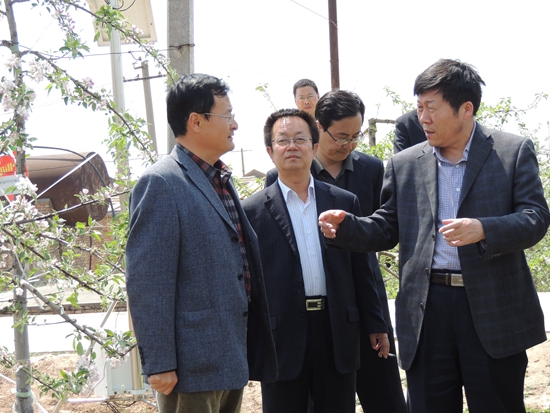 4月25日,陕西省气象局副局长杜毓龙、延安市气象局局长赵榆飞、洛川县气象局副局长高志斌等一行来我院洛川苹果试验示范站,检查指导洛川苹果试验站和延安市气象局合作开展的果业气象研究工作。