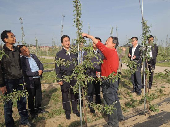 此时恰逢苹果树生理坐果期,看到果园2年生的幼树已经开始挂果,陈卫中部长给试验站的工作及成绩给予了充分的肯定,他欣喜的说,苹果产业的发展关键是靠科技引领,专家们有技术、有眼光、有思想、肯吃苦,使庆城苹果试验站成为甘肃乃至全国苹果产业优化升级的典范。苹果产业不仅作为强县富民的支柱产业,而且有助于带动庆城县经济的快速发展。