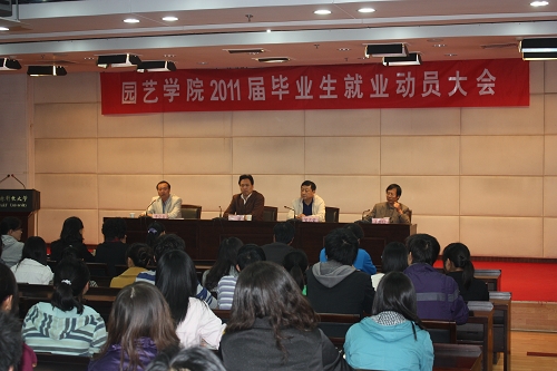 10月20日晚,园艺学院2011届毕业生就业动员大会在国际交流中心207召开,园艺学院党委书记肖斌教授、院长邹志荣教授及学院负责就业工作的主要领导、全体辅导员、毕业班班主任参加了会议,会议由党委副书记李京春主持。