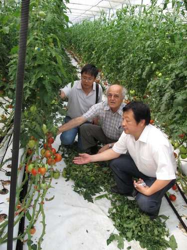 我校代表在雅典大学农业工程教授Mavrogianopulos陪同下探讨温室番茄管理