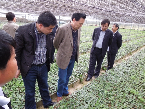 4月16日上午,杨亚军在平利县人大常委会主任陈世斌等陪同下查看了陕西安 康平利县国家茶叶产业体系汉中试验站平利分站中茶108的种植推广现场,并就品种示范有关技术问题进行了询问,对平利县中茶108品种示范园建设和管理给予充分的肯定。同时,杨亚军还考察了平利县女娲银峰茶叶公司观光茶园建设和茶叶加工车间、平利县女娲茗茶公司优良茶树品种无性系茶苗繁育基地,并就有关优良品种苗木繁育技术支撑等问题进行了询问。