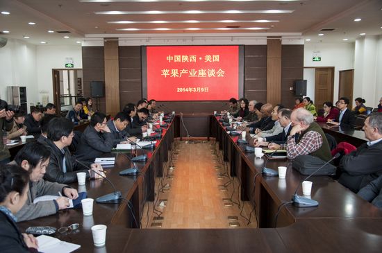 3月9日上午,中国陕西•美国“苹果产业发展座谈会”在我校国际交流中心举行。陕西省果业局相关领导、我院果树专家与美国康奈尔大学、加州大学戴维斯分校的苹果产业领域权威专家60余人参加座谈,中美专家就中国陕西矮砧密植苹果产业的推广、发展以及技术要求做了深入交流和探讨。