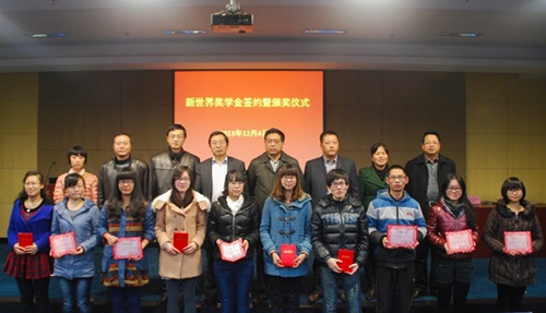 12月4日晚,我院在国际交流中心104会议室举行“新世界奖学金”签约暨颁奖仪式。陕西省果业局苗木中心主任、我院客座教授高建国研究员、新世界果业集团有限公司董事长梁建军、副总经理黄龙新、徐世彦,学院领导、学生处有关负责人以及获奖学生参加了本次仪式。