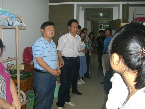 邹院长、肖书记一行逐一走访了东区十二号、四号和五号的所有新生宿舍。每到一个班,邹院长、肖书记都会向新生了解住宿、饮食等情况,同时安慰新生情绪,让新生在一个陌生的环境中体会到家的温暖。