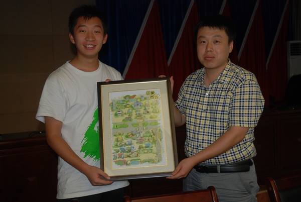 座谈会结束后,队长王韫炜代表服务队向丹凤团县委赠送我校学生创作的“手绘西农”一幅作为纪念,感谢团县委在本次社会实践活动中提供的帮助。队员们纷纷表示将牢记杨书记的话,为农村的发展而努力,为实现大学生的中国梦而奋斗。