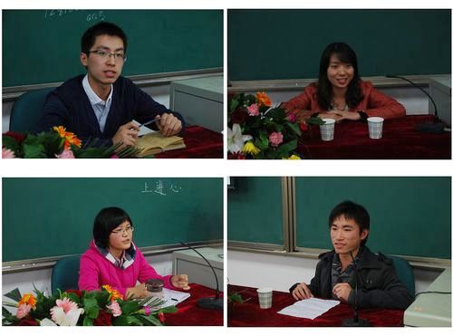10月21日晚,学院在8T06教室举办学习经验交流会,校研究生会主席陈龙、三年国家奖学金获得者张文参、优秀英语学习学生梁畅、国家级大学生创新实验项目主持人杜修进为2012级同学现身说法,交流大学学习经验。