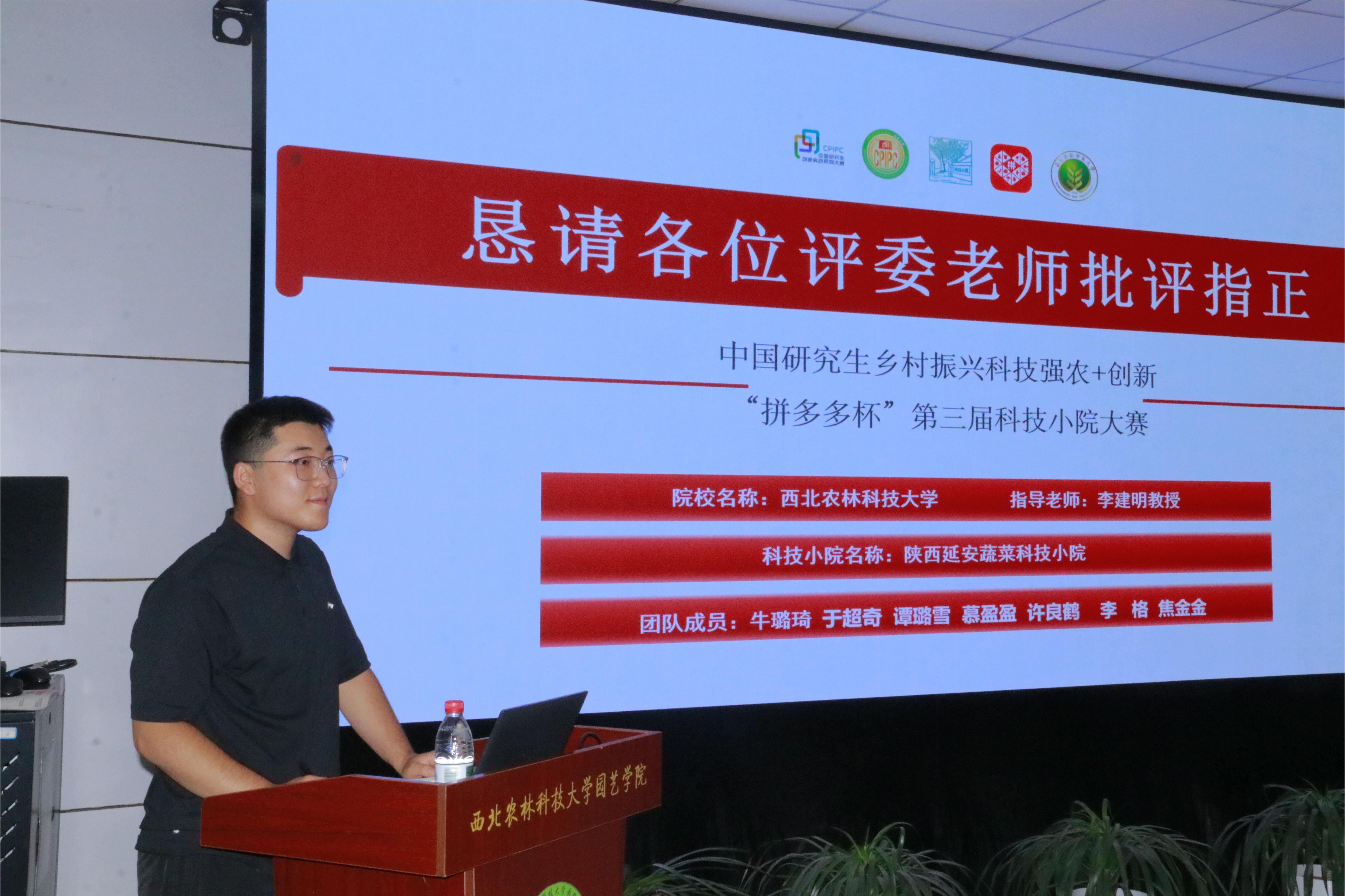 2023年,园艺学院承办了由中国学位与研究生教育学会主办的中国研究生乡村振兴科技强农+创新大赛“拼多多杯”第二届科技小院大赛首届校级赛事,有5个学院的10支科技小院团队、49名队员参赛。通过组织主题培训、现场评审、专家评议等环节,共推出4支科技小院队伍参加陕西和吉林赛区的比赛,参赛项目经过网上初评、区赛线下半决赛的激烈角逐,4支队伍分别荣获陕西赛区一、二、三等奖和吉林赛区优秀奖,3支科技小院团队成功晋级总决赛,并获得国家级三等奖。